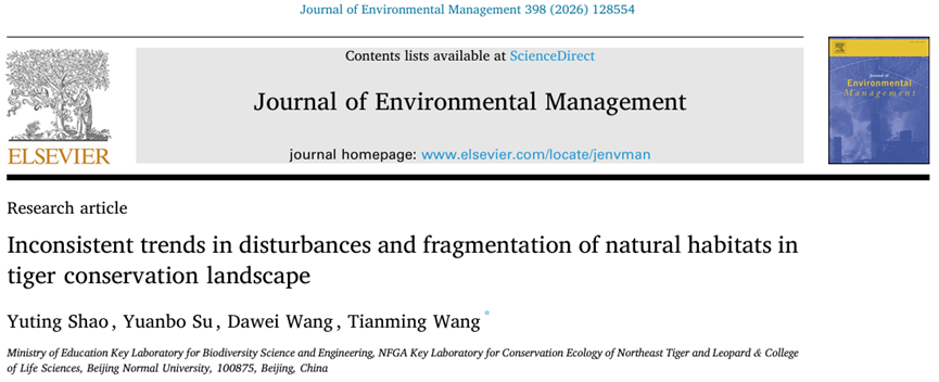 - 王天明教授发文指出:近20年来虎栖息地破碎化和人类干扰持续加剧2026-01-07