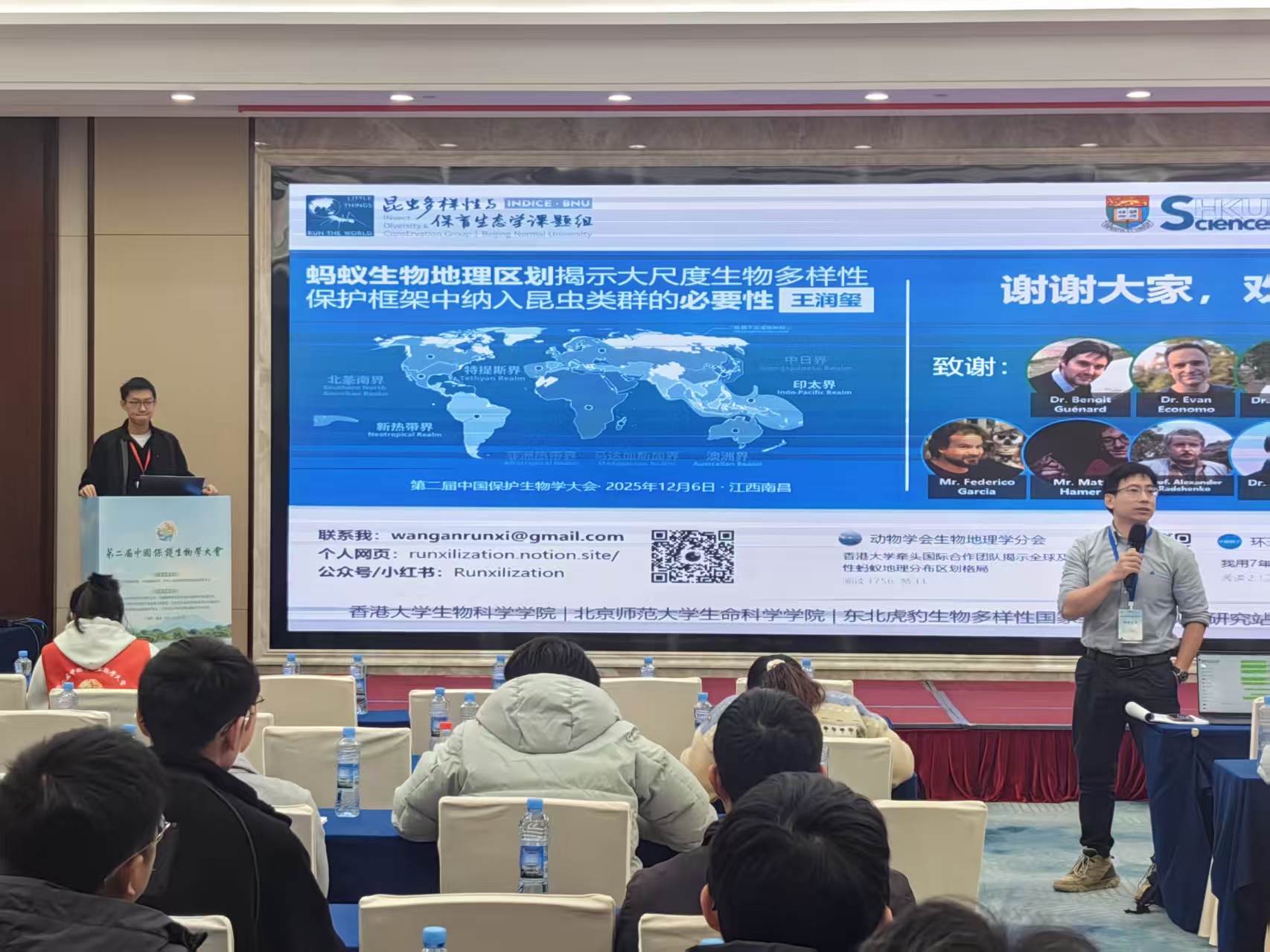 2025年12月4日-7日,由中国动物学会、中国植物学会、中华人民共和国濒危物种科学委员会联合主办,中国动物学会保护生物学分会、中国植物学会系统与进化植物学专业委员会、江西农业大学保护生物学江西省重点实验室、北京市企业家环保基金会(SEE基金会)、江西省野生动植物保护协会、江西农业大学林学院/园林与艺术学院承办的“第二届中国保护生物学大会”在江西省南昌市隆重召开。我站多位教师和研究生参加并作报告。